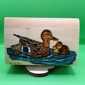 A painting using acyclic paint of the adorable little duckling on wooden box.